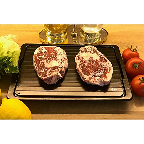 Ok… This is pretty freaking cool!! I ordered this defrosting plate because I always forget to pull meat out of the freezer and we’re tried of how it turns out when defrosted in the microwave. I was skeptical for a very long long time (years honestly). Well I finally broke and got one. Wow!! It works! It uses no electricity or heat, it is actually very cold to the touch. How it works I have no clue but it does! Now you get to watch ice melt cause I’m that amused. (See video)*dont pay any attention to my dog panting (she’s scared of bubble wrap) or drinking in the background, she sure is loud.